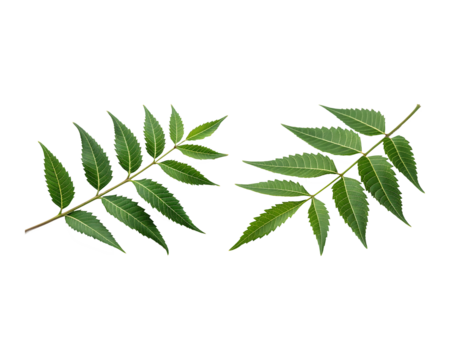 Detailed close up of a vibrant green palm leaf frond with fine feather like segments isolating Nature transparent background