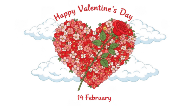 Transparent calendar illustration with january february pages highlighting valentine's day