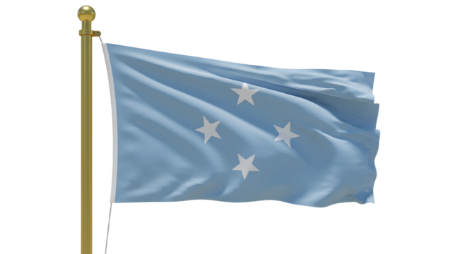 Flag of Micronesia waving on flagpole against white background, symbol of Federated States of Micronesia for independence and national identity