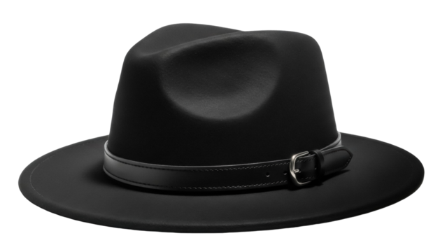 Black fedora hat, classic mens accessory for vintage fashion and retro style on transparent background