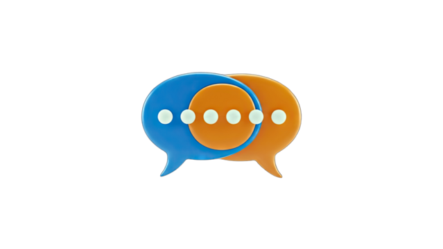 A 3D rendering of a red speech bubble with an ellipsis and a white bubble with a question mark symbolizing communication inquiry and support
