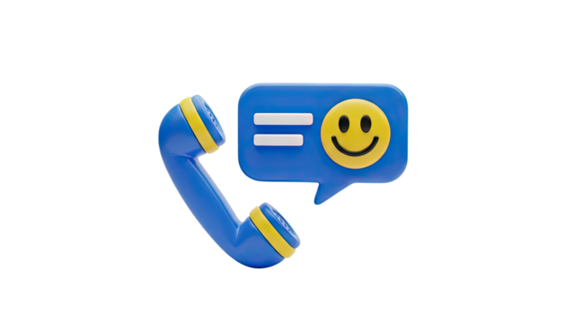 3D Blue Retro Phone Receiver with Smiley Chat Bubble Icon