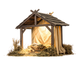 Minimalist wooden nativity scene simple design, isolated on a transparent background