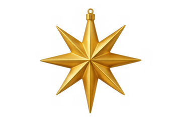 Golden manger star ornament for christmas holiday decoration, symbolizing hope, celebration, and winter festivities