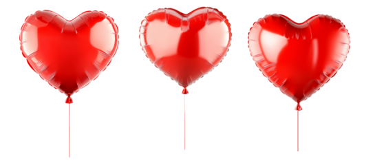 A glossy red heart-shaped foil balloon isolated on white transparent background, symbolizing love, romance and celebration of Valentine Day