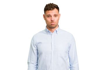 Side view nervous caucasian businessman thinking seriously on transparent background