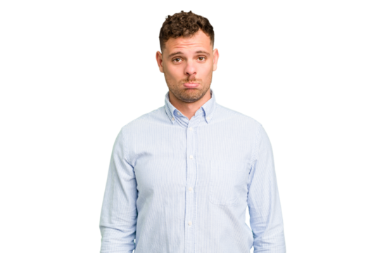 Young caucasian handsome man isolated sad, serious face, feeling miserable and displeased.