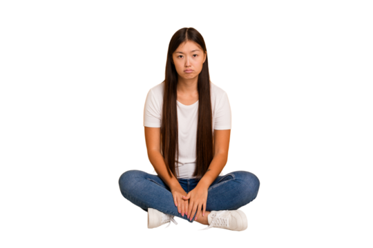 Transparent background portrait woman biting lips looking anxious