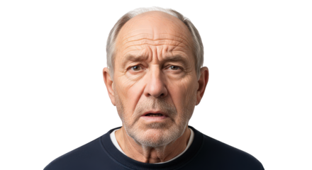 An elderly man with a confused expression, isolated on transparent background facial expressions, human feelings