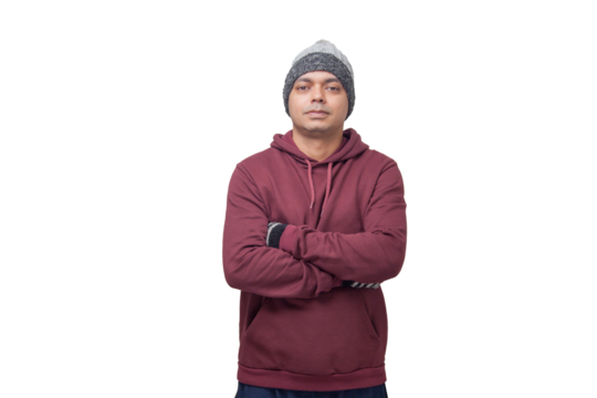 Man feeling cold with cap blouse. Cold concept. Winter concept. Low temperature.