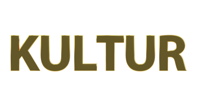 Kultur - goldene plakative 3D-Schrift, Kunst, Musik, Theater, Tanz, Festival, Tradition, Geschichte, Identität, Ethik, Freisteller, Rendering