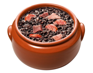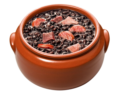 panela de barro com deliciosa receita brasileira de feijoada leve isolado em fundo transparente