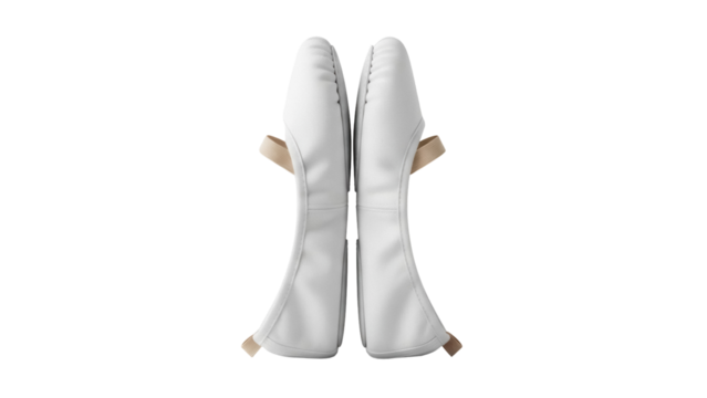 Pair of white ballet shoes isolated PNG on transparent background, dance footwear for girls and women in dance class or performance