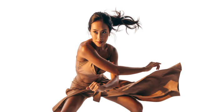 Ballerina silhouette dancing in elegant leap, ballet performer executing aerial jump with movement, transparent background