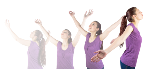 Digital png photo of happy caucasian woman doing yoga stretches on transparent background
