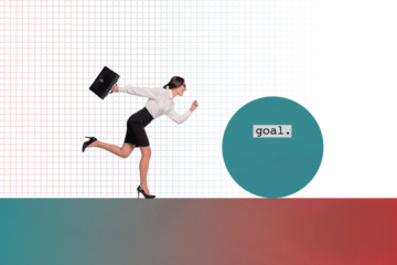 Composite art 3d creative image collage of happy girl it-specialist run laptop hand hold phone gadget technology addiction