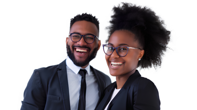 Cheerful business couple talk closeup isolated on a transparent background
