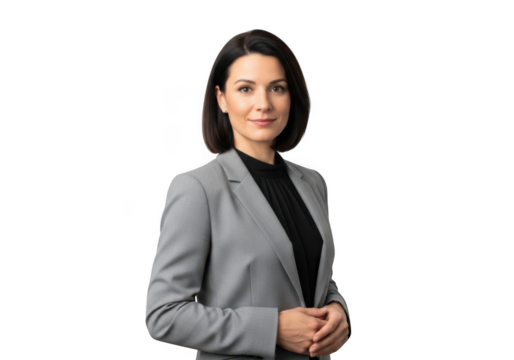 Confident female doctor in white coat on transparent background