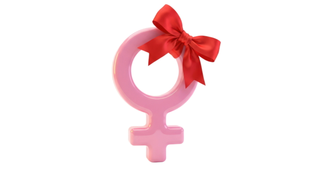 8 march womens day pink female symbol with a red bow on top isolated on a white background transparent background and plain white background