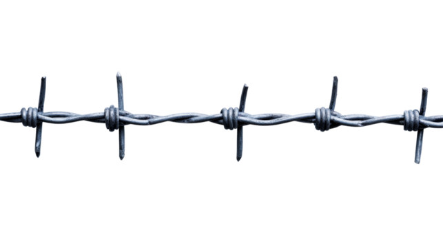 Barbed Wire Fence Security and Boundary Enclosure cut out transparent isolated on white background PNG file