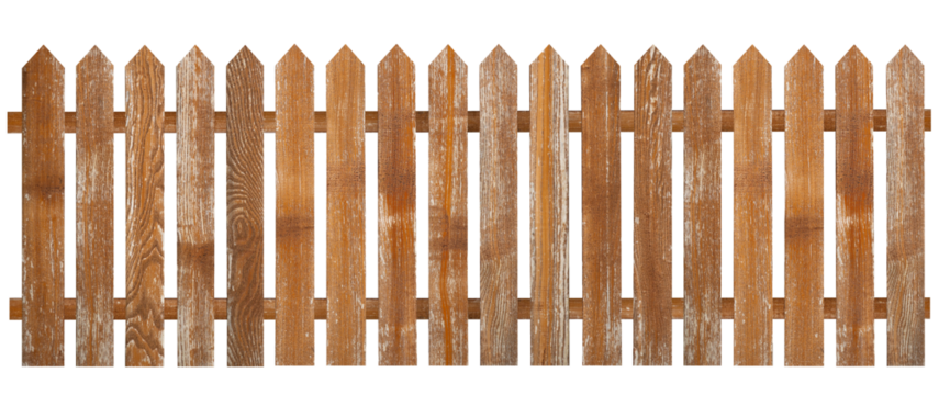 Split rail old rustic wooden fence  isolated on transparent background, , clipping paths for design and decoration