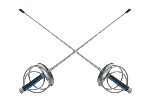 3d icon of two fencing foils crossed isolated on transparent background, a classic sport equipment for fencing, dueling, and historical reenactment activities