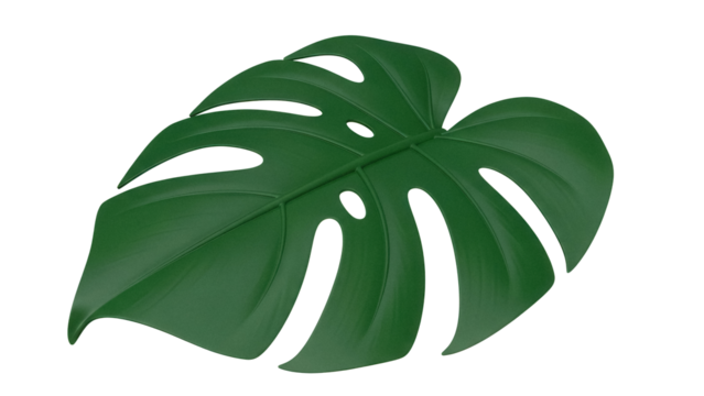 Monstera deliciosa leaf on a transparent background, featuring its characteristic fenestrations and vibrant green color