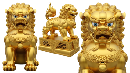 Isolated Chinese dragon statuette, mythical creature sculpture, metallic gold, traditional symbol