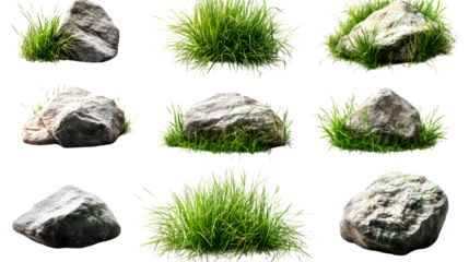 Vibrant Green Grass with Rocks and Stones Collection Isolated on Transparent Background