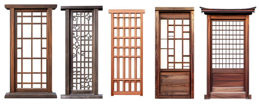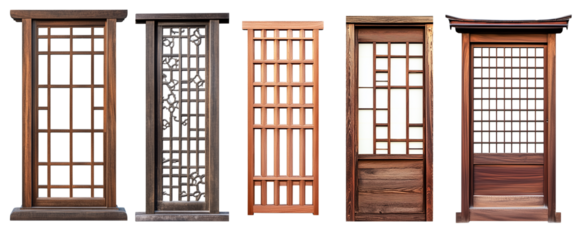 Traditional Japanese Shoo Windows Set Isolated on Transparent Background