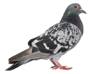 close-up wild  pigeon   city pigeon  straight into camera shot  on transparent background