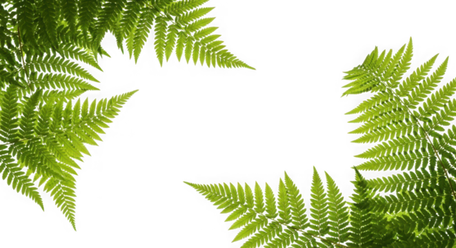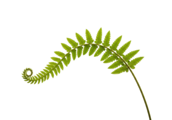 Green fern frond showing detailed natural foliage. Isolated plant on transparent background ready for design