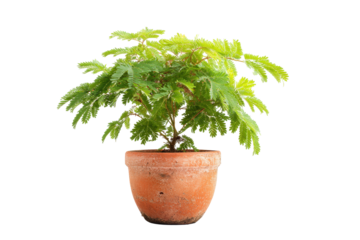Mimosa pudica Plant in Terracotta Pot on Transparent Background