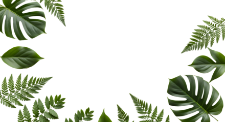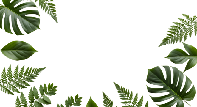 Fern fronds form a frame around a solid black background