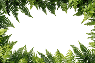 Lush green tropical monstera leaves, abundant ferns, and trailing vines create a natural hanging border. This isolated image is a transparent png.