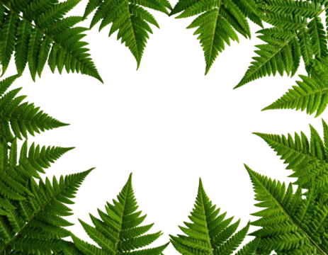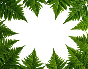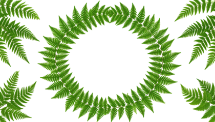 Three symmetrical green fern fronds with intricate details, set on a black backdrop