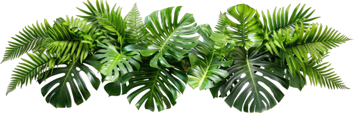 Tropical leaves. Monstera, philodendrons, ferns and other exotic plants isolated on a transparent background