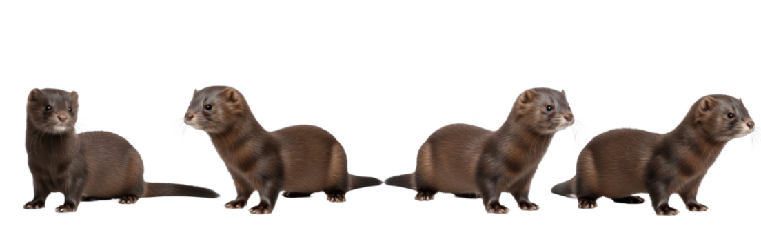 Set of Realistic Ferret Collection, Detailed Wild Ferret Illustration, Small Mammal Predator Set, Isolated on Transparent PNG Background, Oil Paint