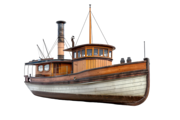 Hyper-realistic Steamboat Isolated on a Pure White Background Perfect for Historical and Artistic Contexts