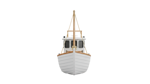 Sleek white yacht sailing on transparent background isolated on a transparent background