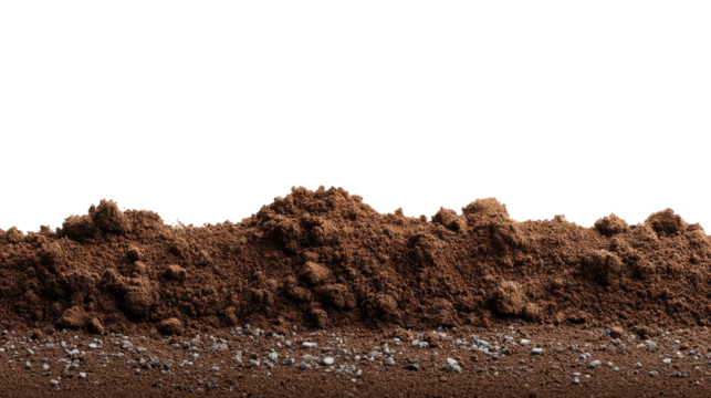 A close up view of dark brown soil against a black background with detailed texture and earthy tones