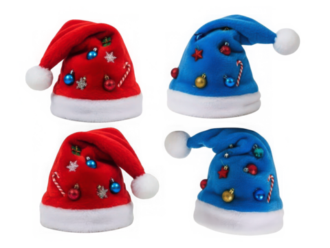 Classic red and blue Santa hat with white pompom, festive xmas design.