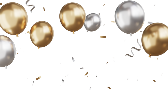 3d render Celebration banner with golden balloons floating and confetti