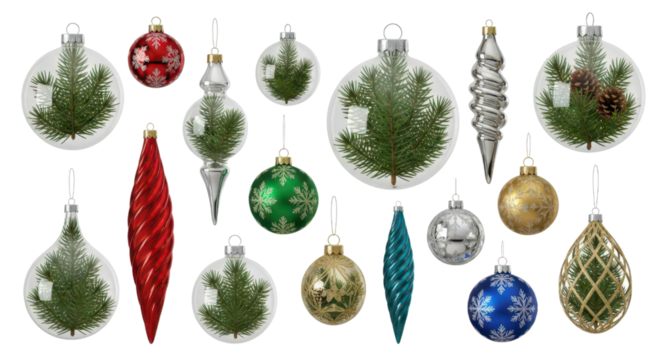 Festive Ornaments: A vibrant display of Christmas ornaments, each a unique masterpiece of holiday cheer and festive elegance.