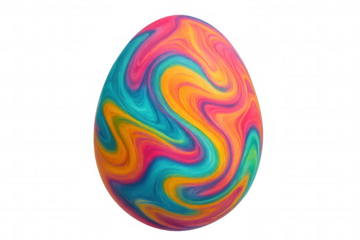 Easter egg with vibrant marbled design, abstract psychedelic swirls, colorful patterned texture, transparent background