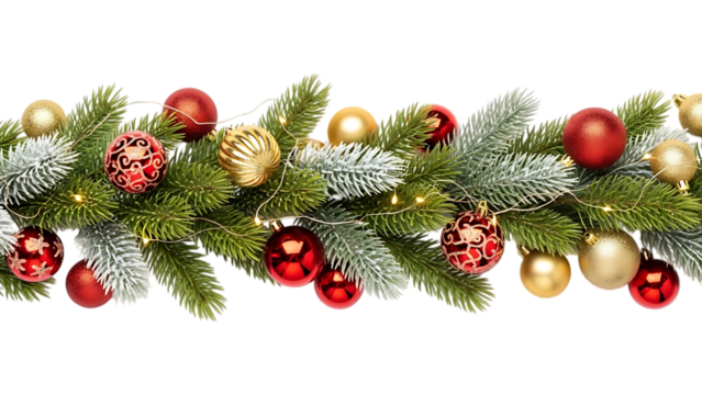 Transparent holiday ornaments and tinsel with blank copy space poster