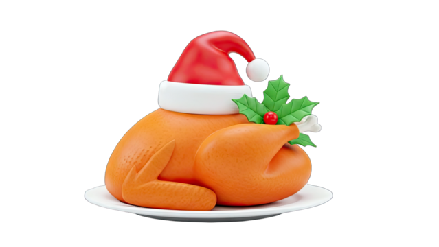 Roasted turkey with potatoes on a decorative plate isolated on transparent background