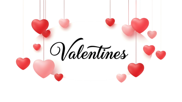 Valentines sign with hanging hearts isolated on transparent background