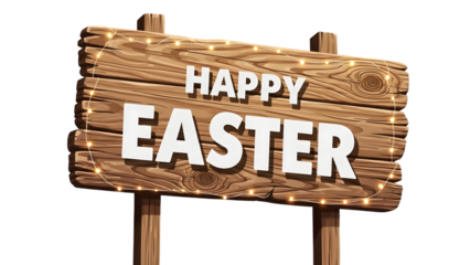 Transparent easter egg hunt sign with arrows holiding colorful eggs
