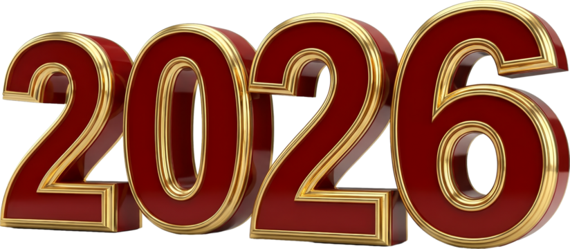 Year 2026 in Red and White Candy Cane Stripes 3D Render on Black Background new year christmas isolated on a transparent background